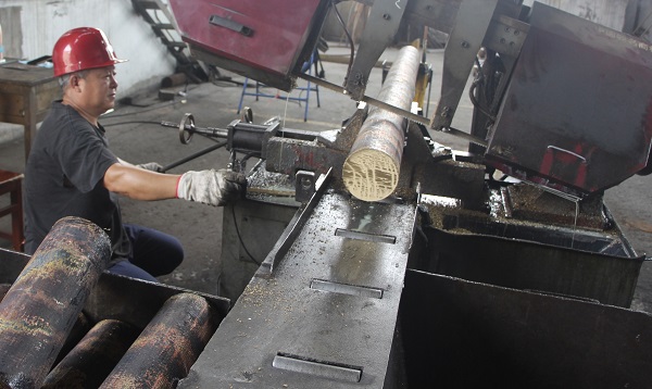 在锯床锯黄铜棒